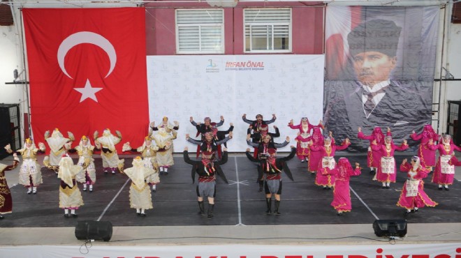 Bayraklı Sanat ve Müzik Akademisi (BASAMAK) kursları kapsamında Süvari Yüzbaşı Şerafettin Kültür ve Hizmet Merkezi'nde halk oyunları eğitimi alan 368 kursiyerden 94'ü, yıl boyunca öğrendiklerini Onur Açık Hava Tiyatrosu'nda düzenlenen yıl sonu etkinliğinde sergiledi. Farklı bölgelerin oyunlarıyla seyirci karşısına çıkan kursiyerlerin performansları alkış aldı. Bayraklı Belediyesi Halk Oyunları ekibi, Muğla Zeybeği, Üsküp, Gaziantep ve Karadeniz yörelerine ait halk oyunları gösterileriyle izleyicilere keyifli anlar yaşattı.