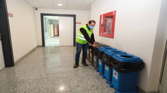 Bayraklı Belediyesi, israfın önlenerek doğal kaynakların daha verimli kullanılması ve atıkların kaynağından toplanıp geri dönüşüme kazandırılması amacıyla sıfır atık yönetimine başladı. Başkan Serdar Sandal imzasıyla hayata geçirilen uygulama kapsamında, belediye binalarında masa altlarındaki çöp kutuları kaldırılacak ve atıklar koridorlara yerleştirilecek atık kutularında ayrıştırılarak toplanacak. Ayrıca gereksiz yere elektrik ve su kullanımının da önlenmesi sağlanacak. Bu konuda herkesi duyarlı olmaya davet eden Başkan Sandal, "İsrafı değil, tasarrufu büyütelim" dedi.