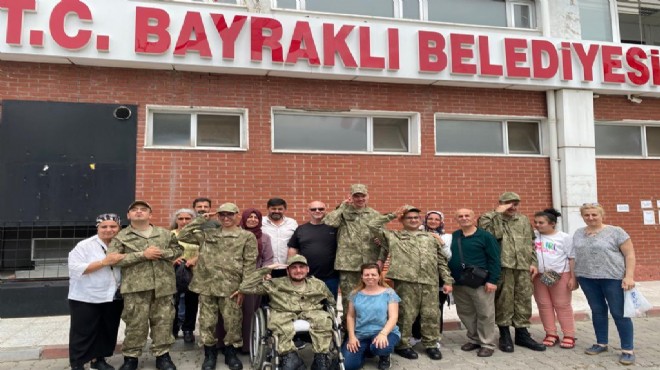 Bayraklı Belediyesinin engelli branşlarındaki spor kurslarına katılan kursiyerler 57’nci Topçu Tugayı’nda düzenlenen temsili törende yemin ederek terhis oldu. 19 genç, bir günlüğüne askerlik yapmanın sevincini yaşarken, ailelerini de duygulandırdı.