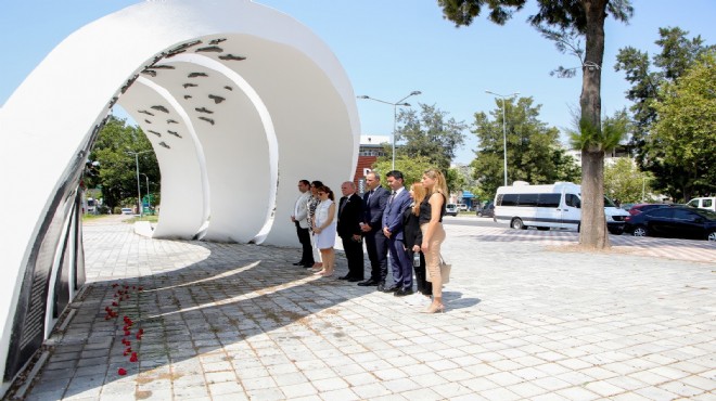 Gezinin ardından Başkan Önal, Başkan Harmancı ve beraberindeki heyet, 30 Ekim 2020'de yaşanan İzmir depreminde hayatını kaybedenlerin anısına yapılan anıtı ziyaret etti. Büyük yıkımda hayatını kaybeden vatandaşlar anısına anıta karanfiller konuldu.