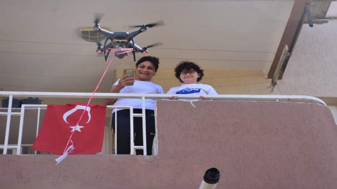 Fotoğraf sanatçısı Sıddık Gedik, kısıtlamada sosyal mesafe kuralına da dikkat çekmek amacıyla farklı bir çalışma yaptı. Gedik, Göztepe semtinde oturan yakınının oğlu 5'inci sınıf öğrencisi Cihan Kahyabaşı'na (11), bayram harçlığını zarfa koyup iple bağladığı dronla ulaştırdı.