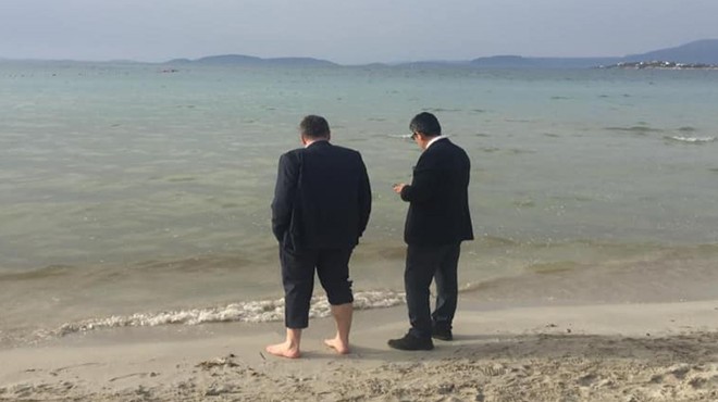 Ayakkabısını çıkarıp, paçaları sıvayan ve plajın tüm sahilini inceleyen başkan, kıyıya doğru olan kirli akıntı nedeniyle Sahil Güvenliğe haber verdi. Sahil Güvenliğin plajdaki kirli akıntı nedeniyle inceleme yapacağı öğrenildi.