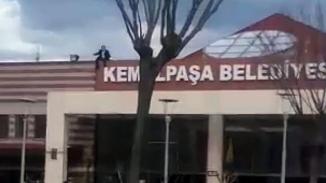 Kemalpaşa Belediyesi'nin Destek Hizmetleri biriminde görevli kadrolu işçi S.D., Temizlik Hizmetleri Müdürü'nün evrak işlerini takip edecek bir pozisyonda görevlendirildi. S.D. bunun üzerine bugün saat 16.00 sıralarında tek katlı belediye binasının çatısına çıktı. Takım elbisesiyle çatıda oturan ve ayaklarını boşluğa sarkıtan S.D., çevrede toplananlara bağırarak durumunu anlattı. Bazı kişiler işçiyi dinledi, bazıları ise yürüyerek alandan uzaklaştı. İhbarla bölgeye polis ekipleri geldi, işçiyi çatıdan inmesi için iknaya çalıştı. Bir polis memuru, arkadan yaklaşarak S.D.'yi dalgın olduğu anda yakalayıp, çekerek kurtardı.