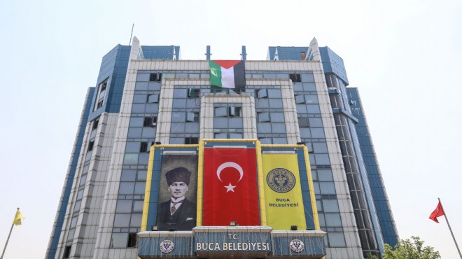 Dünya genelinde İsrail’e yönelik artan tepkilerle birlikte yaşanan zulme tepki koymak ve Filistin halkının yanında olma mesajı vermek için Buca Belediyesi hizmet binasına Filistin bayrağı asıldı.