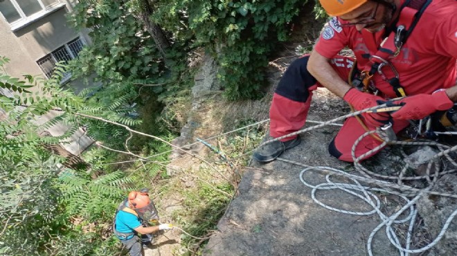 Konak Mithatpaşa Caddesi’nde bulunan ağaçlık bölgede, bir ağacın apartmanın üzerine devrilmesi ile yaşanan olayda Konak Belediyesi ve AKUT ekipleri kısa sürede olay yerine giderek müdahalede bulundu. Olayın kayalık ve aşırı eğimli bir bölgede meydana gelmesi, devrilen ağacın kaldırılmasını bir hayli güçleştirirken, deneyimli ekipler can ve mal kaybının yaşanmaması için azami gayret gösterdi. Yapılan çalışmalar sonucunda apartmanın üzerine devrilen ağaç başarılı bir şekilde kaldırılırken, çevre korumaya alındı. Yapılan kontrollerde kayalık bölgede bulunan diğer iki ağacın daha devrilme riski taşıdığı tespit edilirken hem ağaçları koruma altına almak hem de tehlikeli bir durum yaşanmasının önüne geçmek için gerekli önlemler alındı. Tehlike yaratan iki ağacın devrilmesinin önüne geçmek için halatlar yardımıyla, çelik dübelle duvara sabitleme işlemi gerçekleştirildi.