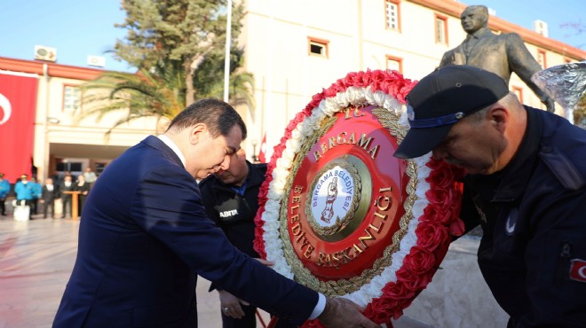 İlk tören Atatürk Anıtı önünde başladı. Anma törenine Bergama Kaymakamı Avni Oral, Bergama Belediye Başkanı Hakan Koştu, Garnizon Komutanı Tank Albay Adnan Aydın, protokol üyeleri, siyasi partiler ve sivil toplum kuruluşlarının temsilcileri, öğrenciler ve vatandaşlar katıldı.