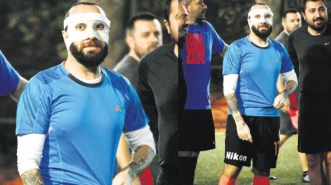 Arda Turan’la tartışması sonucu burnu kırılan Berkay, halı saha maçı yaptı.