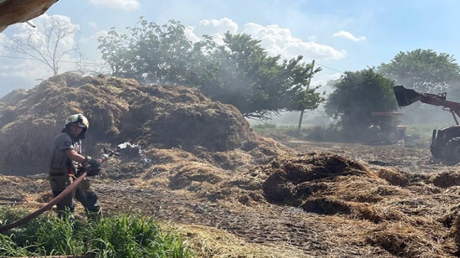 İhbar üzerine gelen itfaiye ekipleri, su sıkarak alevlere müdahale etti. Alevler 7 saatte güçlükle söndürülürken, 100 balya saman küle döndü.