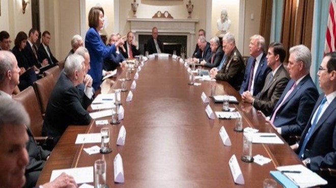 Trump'ın Demokrat partililere Pelosi için "Üçüncü sınıf bir politikacıdır. Onun peşinden neden gidiyorsunuz" sözleri üzerine Demokratlar toplantıyı terk etti.