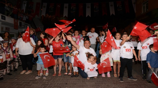 Beydağ ilçesi Beydağ Kalesi önünde meşale ve bayraklarıyla toplanan vatandaşlar coşku ve gururla Ulus Meydanı’na yürüdü.