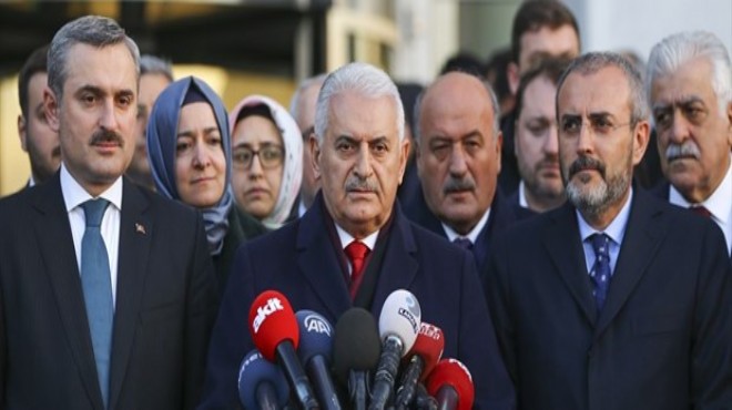 Binali Yıldırım'ın basın açıklamasına, AK Parti genel başkan yardımcıları Mahir Ünal, Fatma Betül Sayan Kaya, Ali İhsan Yavuz ve Erkan Kandemir ile AK Parti İstanbul İl Başkanı Bayram Şenocak ve parti yetkilileri de eşlik etti. (AA)