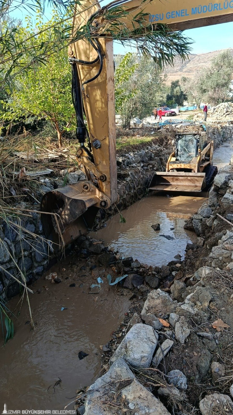 Şiddetli yağışların ardından bazı dere duvarlarında hasar oluştuğu, üst havzalardan sürüklenerek gelen tomruk, ağaç parçaları ve yoğun malzemenin bazı dere üzeri yol geçiş menfezlerinde kesit yetersizliğine yol açtığı tespit edildi. İZSU, Foça Belediyesi ile koordineli bir şekilde hasar gören dere duvarlarının onarılması, dere üzeri yol geçiş menfezlerinin genişletilmesi için çalışmalara başladı. Ali Stair Caddesi’ndeki tarihi köprünün yanına ilave bir geçiş yapısının yapılması ve Mersinaki Caddesi’nin Karayolları Bölge Müdürlüğü sorumluluk alanında kalan kısmında da dere üzeri yol geçiş menfezlerinin yenilenmesi için Karayolları Bölge Müdürlüğü ile koordineli olarak teknik süreç başlatıldı.