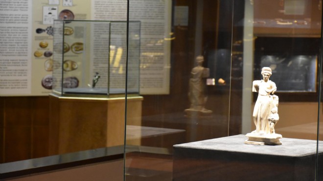 İzmir Arkeoloji Müzesi'nin fuaye salonuna cam fanusa yerleştirilen 2 'Afrodit' heykelciği, ilk kez sergilenmeye başlandı. Bronz malzemeden yapılan ilk heykelciğin, Klasik döneme ait 2 bin 500 yıllık olduğu belirtildi. Yüksekliği 16 santimetre olan 'Afrodit'in çıplak ve ayakta tasvir edildiği aktarıldı. Saçları bukleli 'Afrodit'in ayrıca kollarının kırık olduğu görüldü, diğer 'Afrodit' heykelciğinin ise mermerden yapıldığı belirtildi. Roma dönemine ait 2 bin yıllık bu heykelciğin yüksekliği de 35 santimetre olarak kayıtlara geçti. Grimsi beyaz mermerden yapılmış 'Afrodit'in yanında ayrıca küçük kanatlı erkek figürünün bulunduğu görüldü. Kolları ile burnu kırık heykelciğin üzerinde yer yer kalker tabakası olduğu da dikkat çekti.