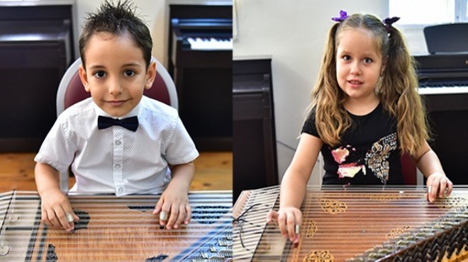 İki minik el de parmaklarını kanunun telleri üzerinde adeta konuşturuyor. İki yıldır kanun çalan 11 yaşındaki Hiranur Eren ile 1 yıldır Bornova Belediyesi'nin verdiği kursa devam eden 15 yaşındaki Eren Sağlam'ın amacı ise ileride birer kanun sanatçısı olmak.