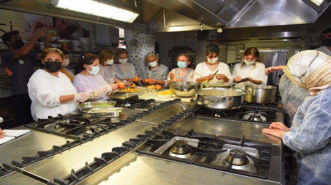 Bornova Belediyesi’nin doğal ve sağlıklı gıda tüketimi konusunda bilinçlendirme, israf etmeme ve ev ekonomisine katkı sağlanması amacıyla hazırladığı etkinlikte şeftali ve incir reçeli yapıldı. Bornovalı kadınlar, uzman eğitmen tarafından anlatılan tekniklerle kadınlar kendi reçellerini yaparken, kullandıkları meyvelerin kabuklarından da sirke ve pestil yapmayı öğrendi.