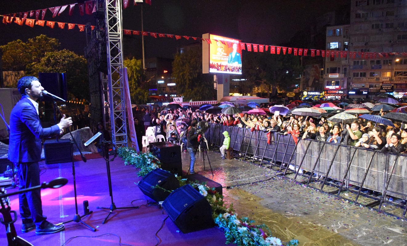 Yürüyüş son bulduğu Bornova Cumhuriyet Meydanı’nda da büyük coşku hakimdi. Ünlü sanatçı Mehmet Erdem Bornovalılarla buluştu. Sevilen şarkılarını seslendiren sanatçıya hayranları coşkuyla eşlik etti. Meydanı hınca hınç dolduran Bornovalılar İzmir Marşı’nı da ellerinde Türk Bayraklarıyla hep bir ağızdan söyledi. Havayi fişek gösterisi ise geceye ayrı bir renk kattı. Performansı ile büyük beğeni toplayan Mehmet Erdem, “Bornova Benim Evim” diyerek, Bornova Fen Lisesi mezunu olduğunu, gençliğinin Büyük Park’ta geçtiğini söyledi.