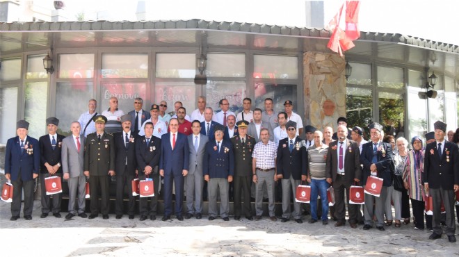 Gazi Alar’ın konuşmasının ardandan Bornova Kaymakamı Mustafa Gündoğan, Bornova Belediye Başkanı Olgun Atila, Garnizon Komutanı Topçu Albay Abdullah Katırcı gazilere tebriklerini ileterek şükranlarını sundu.
