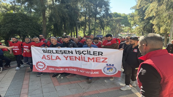 Büyük Park'ta toplanan işçiler sloganlar atarak Bornova Belediyesi binasına yürüdü.