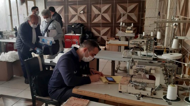 Gelen bir ihbar üzerine Pınarbaşı Mahallesi 7300 sokaktaki binaya denetime giden Bornova Belediyesi zabıta ekipleri; iş yeri açma ve çalıştırma ruhsatı bulunmayan kaçak atölye kurulduğunu, maske üretmek için gerekli koşulların sağlanmadığı, maske, bone, eldiven gibi koruyucu hiçbir tedbir almadan, hijyenik olmayan koşullarda maske üretim yapıldığını tespit etti.