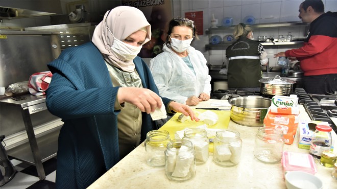 Ekmek ve pide eğitimine katılan kursiyer kadınlar önce hamur hazırlayıp mayaladılar, ardından şekil vererek pişirdiler. Peynir atölyesinde de kaynattıkları çiğ sütü önce pastörize edip, ardından maya ekleyerek doğal yöntemle beyaz peynir yapımını öğrendiler. Bornova Belediye Başkan Yardımcısı Barbaros Taşer ve Bornova İlçe Tarım Müdürü Mustafa Akarca’nın da katıldığı çalışmada mayalanan beyaz peynir beze sarılarak suyunun süzülmesi için asıldı. Oluşumu tamamlanan peynirler, kesilerek kavanozlara koyuldu.