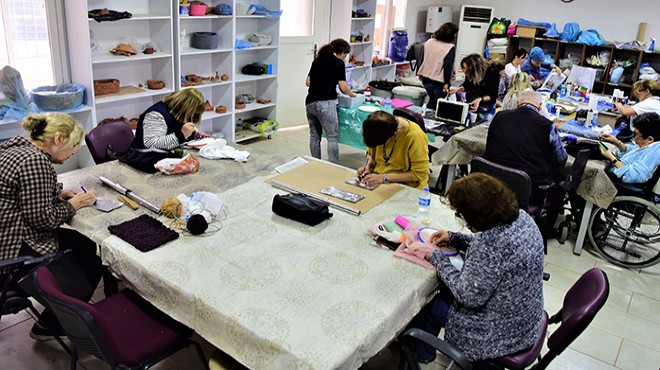 10 yıldır kas rahatsızlığı yaşayan ve yürüme zorluğu bulunan 56 yaşındaki Ayşen Başar Bornova Belediyesi’nin düzenlediği el sanatları kursundaki kursiyerlerden biri. 6 yıldır bir çok kursa katılıyor. Yürüme sorunu yaşadığı için tekerlekli sandalyesi ile eşi Osman Nuri Başar kendisini getiriyor. Kurs bitene kadarda eşinin yanından ayrılmıyor. Ayşen Başar, Bornova Belediyesi’ne düzenlediği kurslardan memnun olduğunu dile getirdi. Başar, “Bu güne kadar, “Kaat-ı sanatı, takı tasarım ve ahşap boyama gibi bir çok kursa katıldım. Şimdi de tek kırma öğreniyorum. Rahatsızlığım nedeniylr denge sorunu yaşıyorum. Bunun için buraya eşimle birlikte geliyoruz. Yanımda oturarak 2 saat beni bekliyor” dedi.