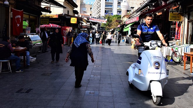 Kaldırım işgallerini önlemek için de çalışmalar yapan Zabıta ekipleri, bu konuda Bornova Belediyesi tarafından yeni başlatılan kampanyayı da duyurmak için broşür dağıtımı yapıyor.