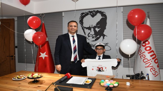 Bornova’da 23 Nisan kutlamaları coşkuyla başladı. Bornova Belediye Başkanı Ömer Eşki, 23 Nisan geleneğini, makamını 9 yaşındaki Dr. Cavit Özyeğin İlkokulu öğrencisi Hakan Efe Arıkan’a devrederek yaşattı. Başkan Eşki, çocukların geleceğe umutla bakacakları bir Türkiye için Bornova Belediyesi olarak hiç durmadan çalışacaklarını söylerken, makamı devralan Hakan Efe Arıkan, Filistin mesajıyla dikkat çekti. Filistin’de çocukların savaş ortamında yaşamak zorunda kaldıklarını söyleyen Arıkan, Bornova Belediyesi’nde çocuk hakları birimi kurulmasını istedi.
