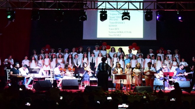 Türkülerden, latin danslarına Bornova Belediyesi’nin açtığı onlarca kursun en güzel sunumlarının ve kareografilerinin yer aldığı gecede, keman, gitar, piyano, kanun, ritim, yan flüt ve klarnet sesleri Büyükpark’ın her yerinde duyuldu. Çocuk korosunun da birbirinden güzel şarkıları seslendirdiği Ayfer Feray Açıkhava Tiyatrosu’nun sahnesinde eğitmenler de enstrümanlarıyla müzik ziyafeti sundu.