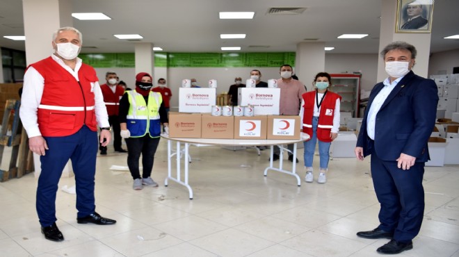 Bornova Belediyesi tarafından hazırlanan ve dağıtımı yapılan gıda paketlerinde şeker, pirinç, bulgur, mercimek, kuru fasulye, nohut, makarna ve ayçicek yağı gibi ürünler bulunuyor. Kızılay’ın da desteğiyle