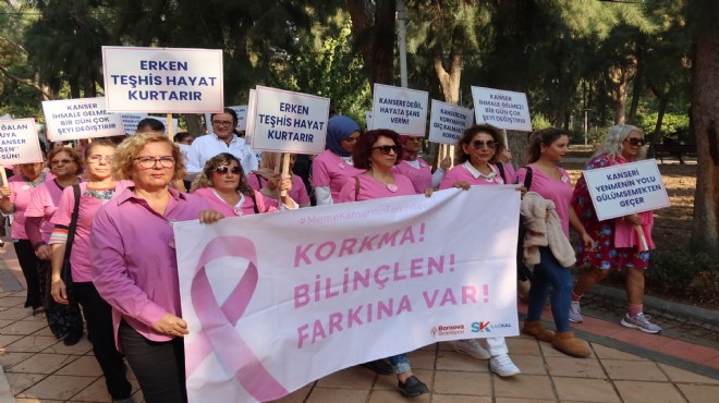 Bornova Belediyesi ile Sağkal Derneği işbirliği ile yapılan etkinlikler kapsamında Büyükperk’tan başlayan Farkındalık Yürüyüşü’ne pembe tişörtleriyle katılan kadınlar erken teşhisin önemini taşıdıkları pankartlarla anlattı. Yürüyüşün ardından Uğur Mumcu Kültür ve Sanat Merkezi’nde düzenlenen “Meme Kanseri Hakkında Doğru Bilinen Yanlışlar” konulu söyleşide Opr. Dr. Cüneyt Tuğrul, önemli bilgiler verdi. Her kadının 20 yaşından sonra kendi kendini muayene etmeyi öğrenmesi gerektiğinin önemine vurgu yapan Dr. Tuğrul, meme kanserinin günümüzde her 7-8 kadından birini etkilediğini, saptandığı anda yaşamı tehdit ettiğini, ne kadar erken teşhis edilirse o kadar kolay tedavi edildiğini söyledi. Son yıllarda erkeklerde de görülmeye başlanan meme kanserinde riskin 20’li yaşlarda düşükken 40’lı yaşlarda arttığını belirterek, “Kadınlar meme kanserinden korunmak için 25 yaşında ilk doktor muayenesi olmalı, 30-35 yaşlarından itibaren her yıl meme muayenesi olmalı ve meme ultrasonu çektirmeli, 40 yaşında ilk mamografi, 40-65 yaş arasında ise her yıl muayenenin yanı sıra ultrason ve mamografi çektirmeli. 65 yaş sonrasında ise iki yılda bir muayene gereklidir” dedi.