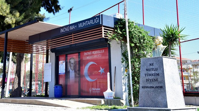 Mahalle muhtarlarının vatandaşa daha iyi hizmet verebilmeleri için ilçedeki muhtarlıkları yenileyen Bornova Belediyesi, modern ofisleri aratmayan muhtarlık binalarının önüne Atatürk büstü koydu. Yine Büyük Önder’e ait; “Ne mutlu Türküm diye” yazılı 1.5 metrelik granit kaidenin üzerine oturtulan Pirinç kaplama Atatürk büstü, yeni muhtarlık ofisleriyle uyumlu biçimde, estetik şekilde yerini aldı.
