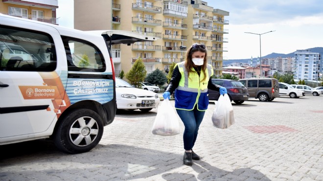Bornova Belediyesi, kurduğu özel ekiple 65 yaş üstü ve riskli grupta yer alan vatandaşların alışverişlerini yaparak evlerine teslim ediyor.