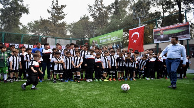 Bornova Belediye Başkanı Olgun Atila, Büyükpark'ta Altay, Göztepe, Altınordu ve Bornova Belediyespor'un alt yapı sporcularının da kullandığı yenilenen halı sahada minik sporcularla buluştu. Altaylı minikler kendilerine sunduğu imkanlar nedeniyle Başkan Olgun Atila'ya çiçek vererek teşekkür etti.