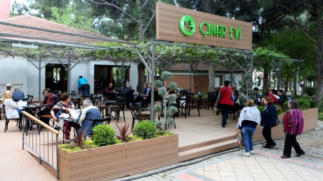 Büyükpark içinde hizmet veren Kızlar Kahvesi ve Down Kafe’nin ardından açılan Çınar Evi sayesinde de vatandaşların keyifli zaman geçiriyor. Günün her saatinde dolu olan ve Yaş almış büyükler için hayata geçirilen Çınar Evi Bornovalıların uğrak noktası haline geldi. Mekanda çalınan müziklerden dekorasyona, menüden oyun imkanlarına kadar her şey, onlara uygun tarzda hazırlandı.
