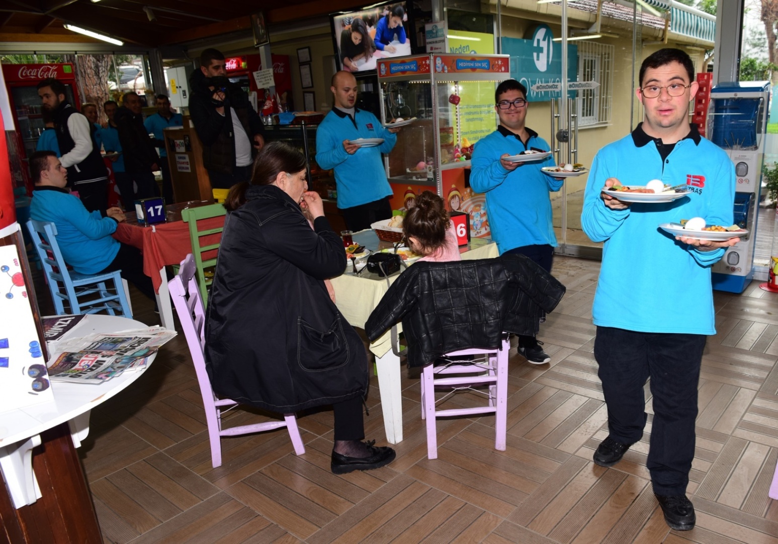 Bornova Belediyesi’nin 2015 yılında Down Sendromlu gençlerin çalışarak sosyalleşmesi amacıyla projelendirilip, aynı yıl 3 Aralık Dünya Engelliler Günü’nde hizmete açtığı Down Kafe’de anlamlı bir buluşma gerçekleşti. Down Kafe’de çalışan down sendromlu gençlerin aileleri, bu özel mekanda düzenlenen kahvaltıda biraraya geldi. Yıllarca üzerlerine titredikleri çocuklarının servis ettiği çayları yudumlayan anne ve babalar başta olmak üzere tüm aile bireyleri gururlu ve mutluydu.