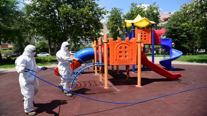 Özellikle pandemi döneminin ardından ailelerin ortak kullanılan alanların temizliği ve hijyeniyle ilgili hassasiyetinin arttığını belirten Bornova Belediyesi Parklar ve Bahçeler Müdürlüğü yetkilileri, bu nedenle parklardaki genel temizliğin yanında dezenfeksiyon işlemini de yaptıklarını söyledi.