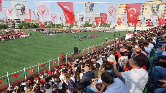 Hükümet Konağı’ndaki törenin ardından Bornova Şehir Stadı’ndaki kutlama programına geçildi. Vatandaşların yoğun ilgi gösterdiği törende Türkiye ve Dünya Şampiyonu Milli cimnastikçiler gösterileriyle büyük heyecan yaşattı. Öğrencilerin günün anlam ve önemini anlatan şiirler okuduğu törende Cumhuriyet Kupası Kros Yarışması’nda dereceye girenlere ödülleri verildi. Bornova’da göreve yapan beden eğitimi öğretmenlerinin zeybek gösterisi de büyük ilgiyle izlendi. Bornova’daki okulların yer aldığı resmi geçit töreni ile son bulan stadyum kutlamalarında dev Türk Bayrağı açıldı.