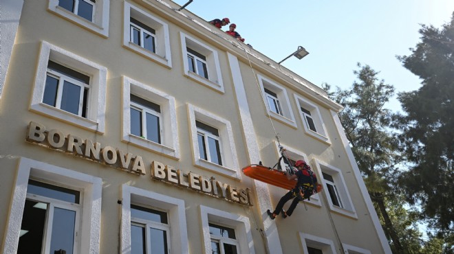 Tatbikat Bornova Belediyesi Ana Hizmet Binası’nda yangın alarmının devreye girmesiyle başladı. Dördüncü katta bulunan Etüt Proje Müdürlüğü’nde yangın çıktığı bilgisi üzerine, acil durum ekipleri hızla harekete geçti. Bina personelinin merdivenlerden tahliye edilmesi sağlanırken, yangının üst katlara yayılması nedeniyle iki personel mahsur kaldı. İtfaiye ekiplerinin bölgeye ulaşmasıyla birlikte yangın söndürme ve kurtarma operasyonu başlatıldı.