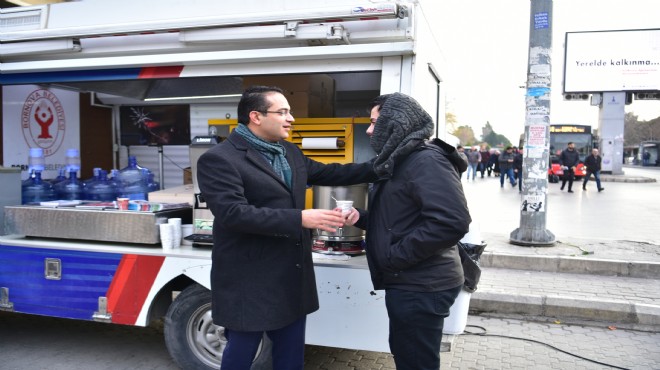 Bornova Belediye Başkanı Olgun Atila da havaların iyice soğuduğu, sabah saatlerinde sıcaklığın -5 dereceye düştüğü günde Bornova Metro İstasyonu önündeydi. Vatandaşlara çorba ikram edip, sohbet eden Başkan Atila, “Soğuk havalarda sıcak çorbayla hemşehrilerimiz içini ısıttığımız uygulamamızı bu yıl da sürdürüyoruz.” dedi.