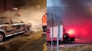 Tünelde yangın paniği: Araç alev topuna döndü!