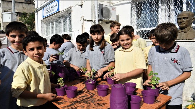Bornova Belediyesi, betonlaşan kentte bitki ve çiçek yetiştirme imkanı bulamayan ortaokul öğrencilerini toprakla buluşturdu. Hazırlanan proje kapsamında ilk kez fide dikme tecrübesi yaşayan minikler Bornova Belediyesi’ne ve başkan amcalarına teşekkür etti. Çocuklar, “Bizim için bu etkinliği hazırlayan ve toprakla buluşturan Bornova Belediye Başkanı Dr. Mustafa İduğ’a teşekkür ederiz”diyerek duygularını dile getirdi.