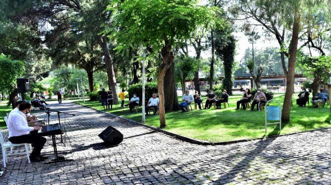 Bornova’nın çınarları Büyükpark’taki Çınar Kafe önünde sosyal mesafe kurallarına uygun şekilde düzenlenen etkinlik alanında maskeli olarak yer aldı. Türk Sanat Müziği’nin birbirinden güzel eserleri Bornova Belediyesi’nin müzik eğitmenleri tarafından seslendirildi. Haftada bir gün sokağa çıkma izni olan ve müzikle moral bulan yaşlılar, uzun süre evde kalmanın stresini şarkılara eşlik ederek attı.