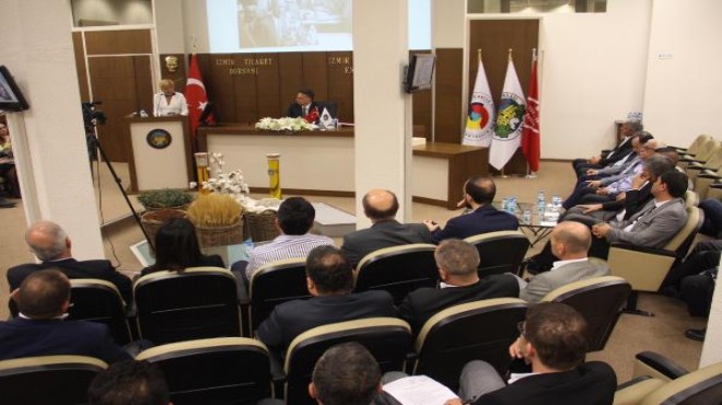 Toplantıda söz alan İTB Meclis Üyesi Mehmet Esmer de, Türkiye'de 113 borsanın hiçbirinde üretici temsilcisinin bulunmadığını söyleyerek "Borsalar üretimin ticareti ilgilendiren kısımlarında yer alıyor. Ancak İTB üzüm konusunda üreticiye çok destek veriyor, bu unutulmuş durumda. Üretici için kuru üzüm ihracatının devam etmesi konusunda çalışmalarımız var. Çünkü kuru üzümün yüzde 90'ı ihraç ediliyor. Sarıgöl'den çıkan aracı Turgutlu, Alaşehir ve Manisa'dan geçerek borsaya numune getiriyor. Dileyen üretici burada ürünlerini kullanma hakkına sahip, pazarlıklarla fiyat buluyor ve o gün İTB'de fiyat ne ise üretici bunu görebiliyor. Borsa ziraat mühendisleri ile üreticiye destek veriyor" diye konuştu.(DHA)