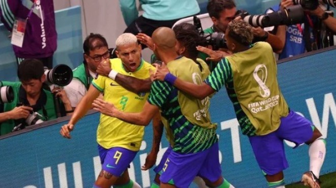 Baskısını artıran Brezilya aradığı golü 62. dakikada buldu. Ceza alanı sol çaprazında Vinicius Jr'ın şutunda kaleciden dönen topu Richarlison tamamladı ve takımını 1-0 öne geçirdi.