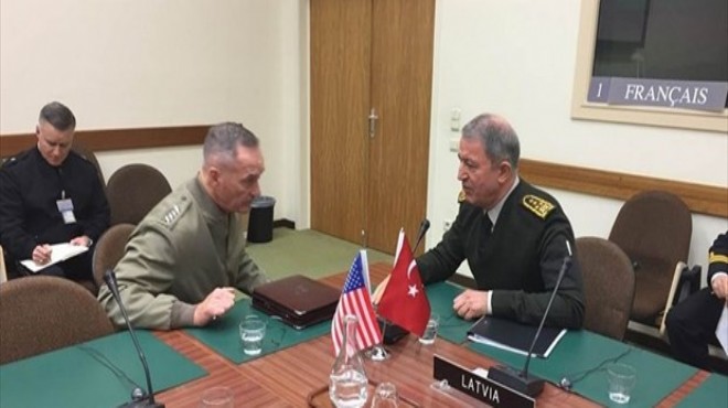 Genelkurmay Başkanı Orgeneral Hulusi Akar, Brüksel'de ABD'li mevkidaşı General Joseph Dunford ile bir araya geldi. Gündem ABD'nin YPG ordusu kurma girişimiydi.