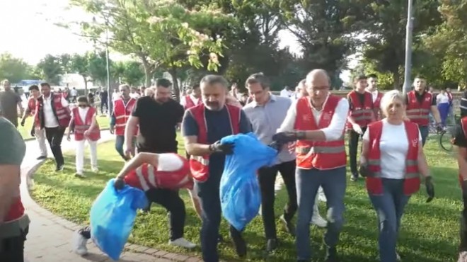 Dün İzmir Büyükşehir Belediye Başkanı Cemil Tugay’ın sahaya inerek çöp toplamasının ardından bugün ise CHP İzmir İl Başkanı Şenol Aslanoğlu, ilçe belediye başkanları ve il yöneticileri Konak’ta çöp toplamaya çıktı. Çöp toplama mesaisine İzmir Büyükşehir Belediyesi CHP Grup Başkanvekili Altan İnanç da katıldı.