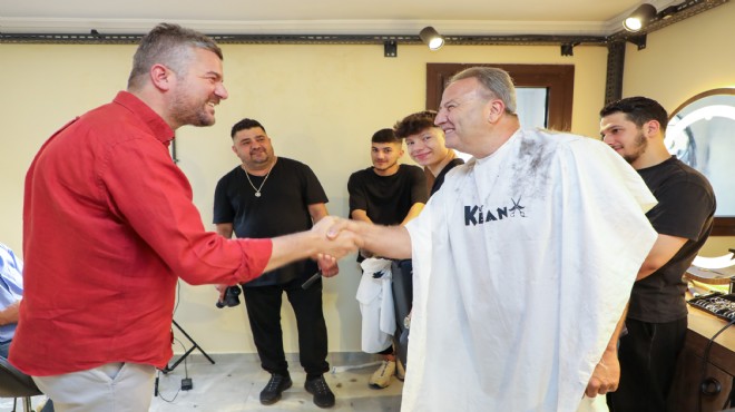 Buca Belediyesi, ilçenin çınarlarına ikinci yuva olarak hizmet veren Ata Evi’nde bayram öncesi dayanışma ve birliktelik ruhunu artıran bir çalışmaya imza attı. Buca’nın esnaflarından Kuaför Kenan ve ekibi, gün boyu Ata Evi’nin konuklarına berberlik hizmeti sundu. Buca Belediye Başkanı Görkem Duman da çalışma esnasında Ata Evi’ni ziyaret ederek Buca’nın çınarları ile sohbet etti.