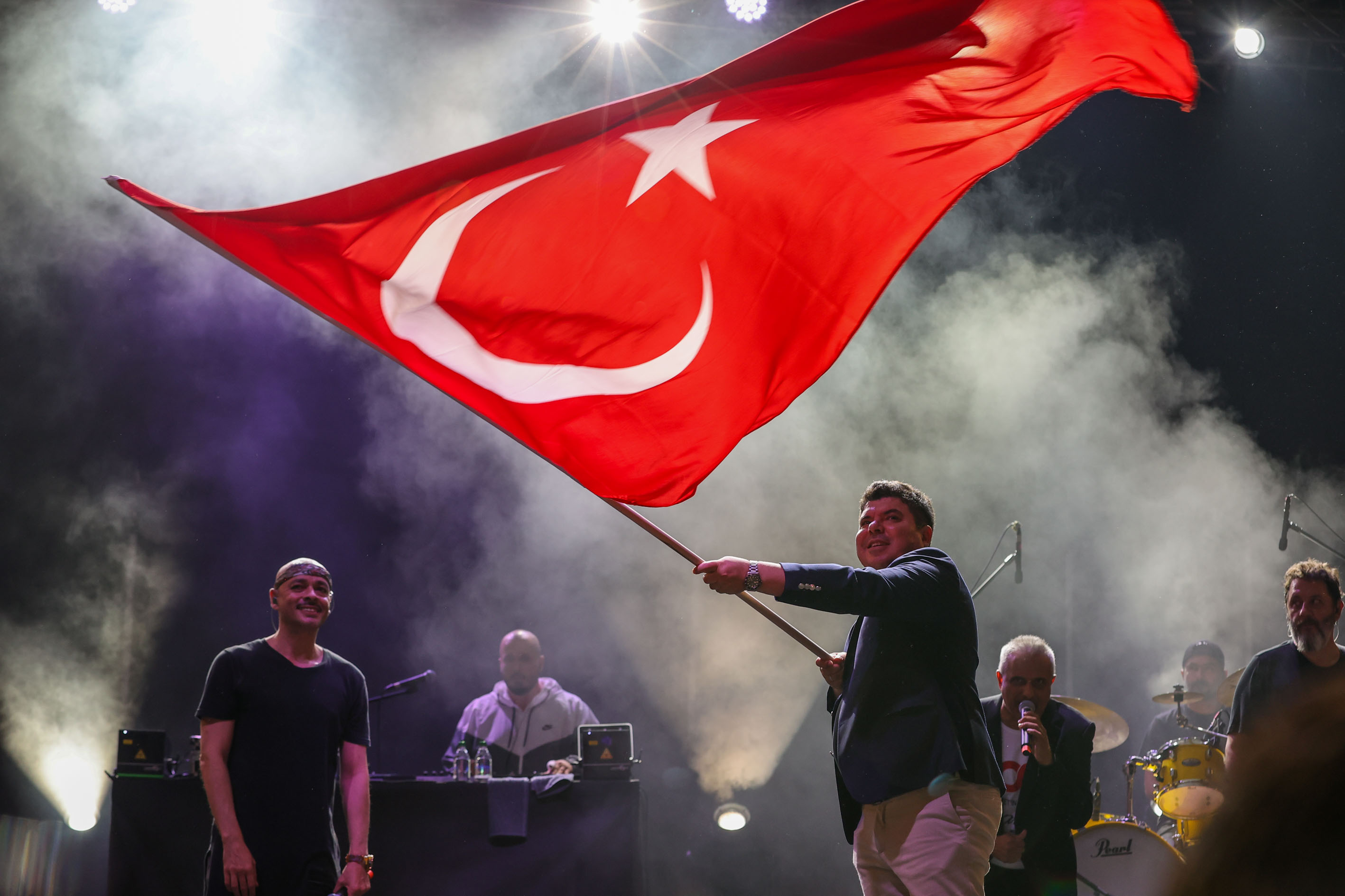 Daha sonra ünlü rap müzik sanatçısı Ceza sahne aldı. Başkan Erhan Kılıç, bu özel gecenin hatırası olarak sanatçı Ceza’ya Türk bayrağı hediye etti. Konser alanını dolduran binlerce İzmirli de Ceza’nın şarkılarına eşlik ederek, unutulmaz saatler yaşadı.