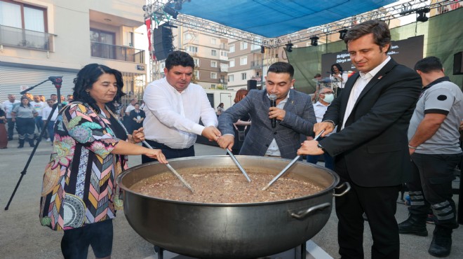 Buca’da, Muharrem ayında geleneksel hale getirilen aşure ikramı, yurttaşların yoğun ilgisiyle gerçekleştirildi. Kardeşlik ve bereketin simgesi aşure, sanatçılar Ozan Özdemir, Mustafa Eke ve Müslüm Eke’nin deyişleri eşliğinde kaynatılırken Buca Belediye Başkanı Erhan Kılıç, “Aşuremiz bedenimize şifa, soframıza bereket, derdimize derman, hepimize helal olsun” dedi.
