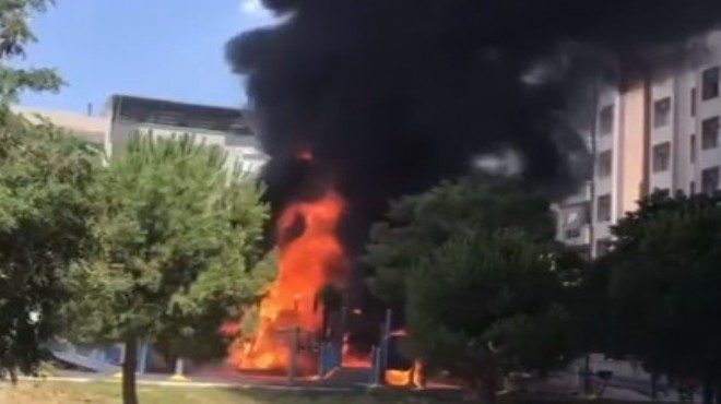 Park cayır cayır yanarken oyuncaklar da kullanılamaz hale geldi.